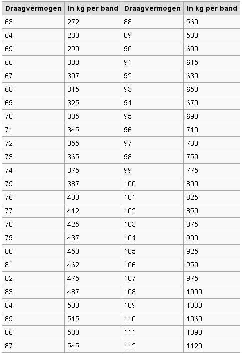 Draagvermogen van een bandenmaat