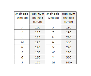 Snelheidsindex van een bandenmaat