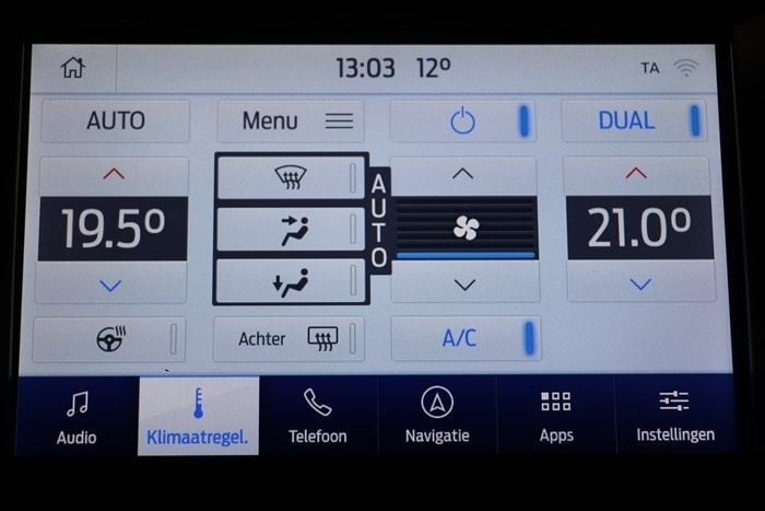 Airco dual elec. Navigatiesysteem ( GPS ) Bluetooth Radio + CD USB Wifi Connect Achteruitrijcamera Ford Sync Ambient verlichting Parkeersensoren voor -en achter